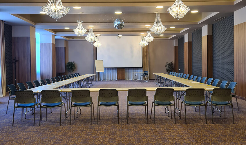 Echipament standard: videoproiector, ecran de proiecție, sistem de sonorizare, flipchart, Wi-fi, microfon wireless.